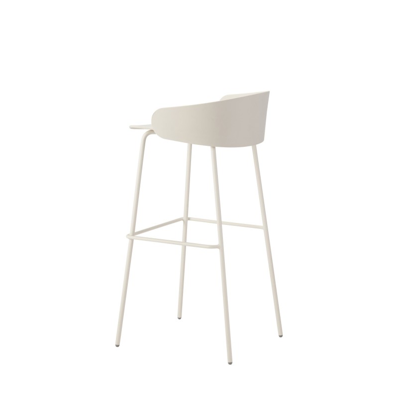 OLLA | Es un taburete esbelto y elegante para el hogar o para un lounge o café. De polipropileno, en color gris o crema.