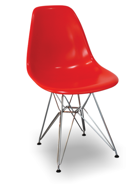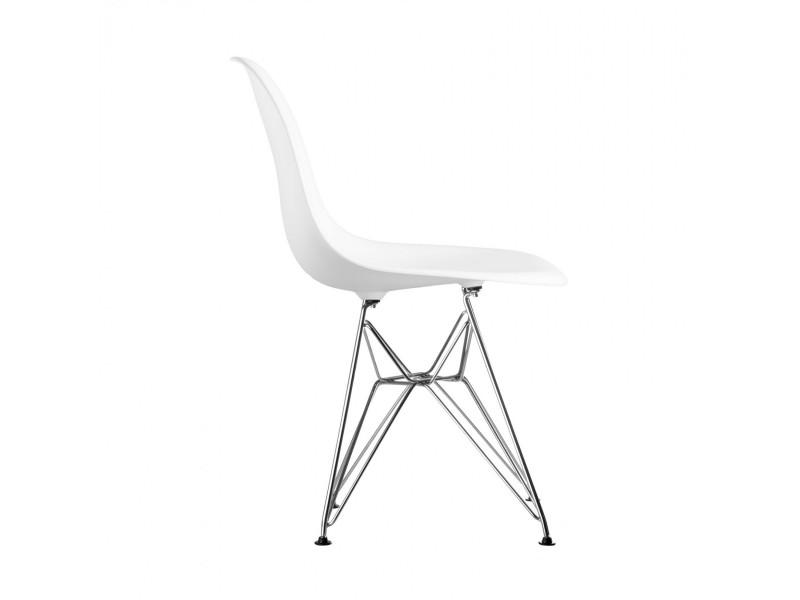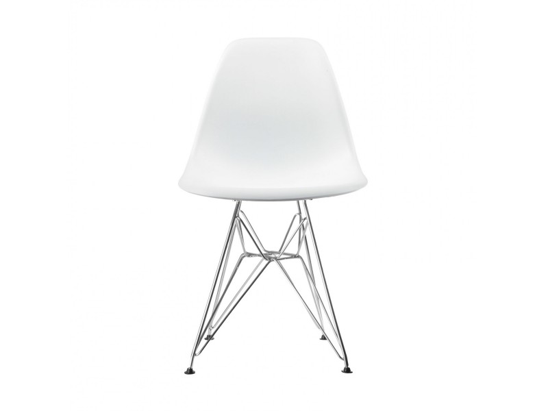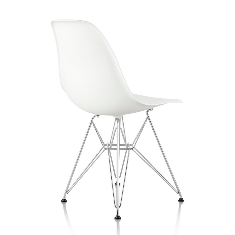 La base «Eiffel Tower» de la silla DSR (Dining Height Side Chair Rod Base), se caracteriza por una intrincada y elegante construcción de cable de acero, combina ligereza y elegancia de formas con resistencia estructural.