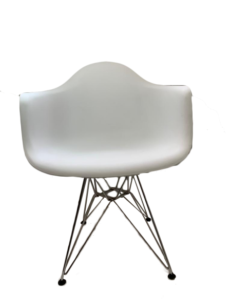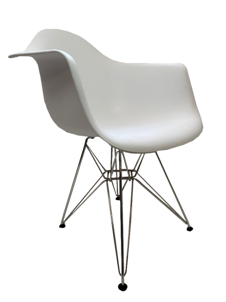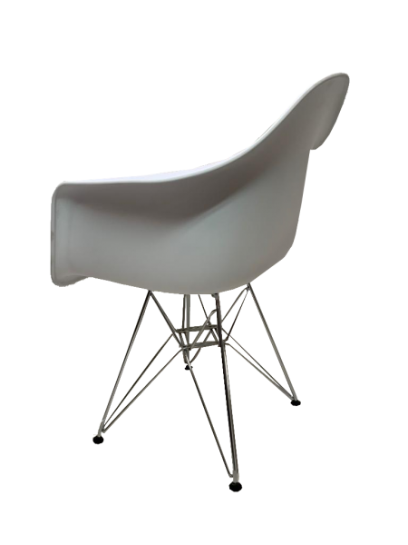 La base «Eiffel Tower» del Sillón DSR (Dining Height Side Chair Rod Base), se caracteriza por una intrincada y elegante construcción de cable de acero, combina ligereza y elegancia de formas con resistencia estructural.