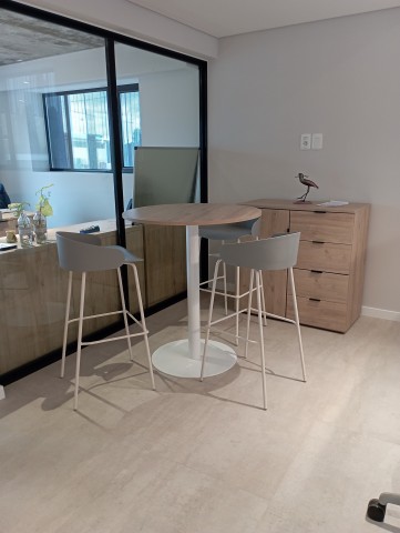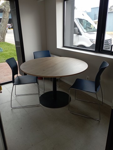Para reuniones eficientes, nuestras mesas circulares con base PLATINA son ideales, proporcionando el ambiente perfecto para colaborar y crear.