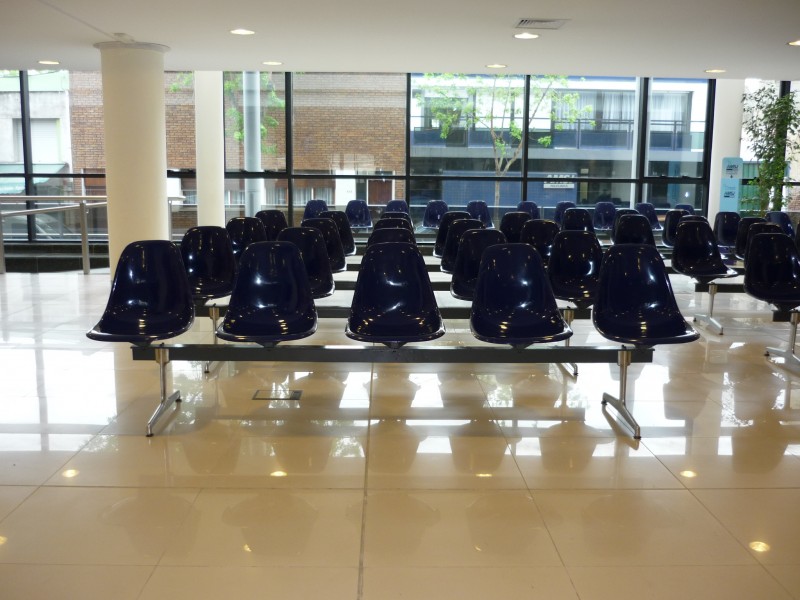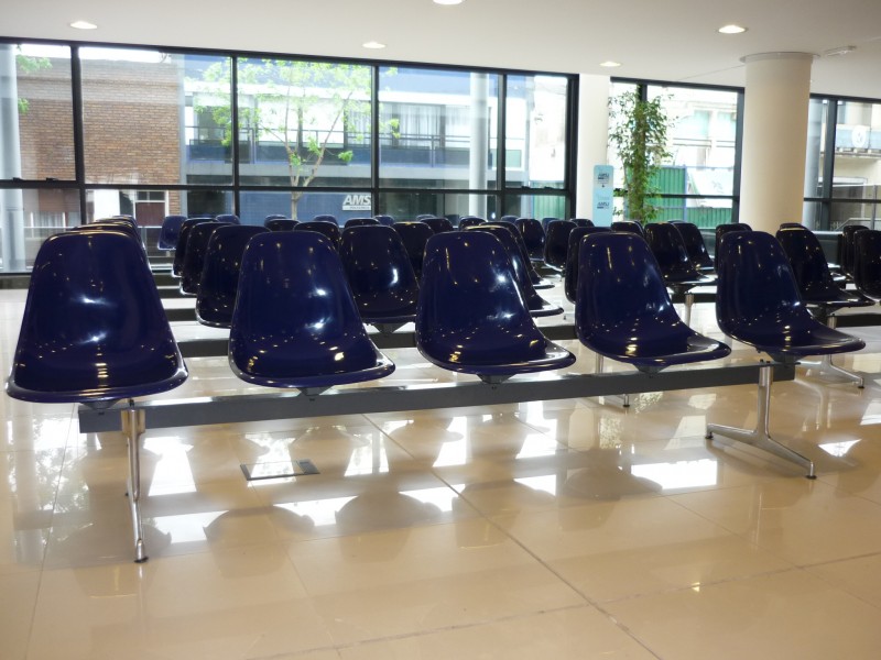 Este sistema de sillas de espera diseñado en 1963 por Ray y Charles Eames fue una expansión y adaptación programática a los espacios de espera, combinando las populares sillas fiberglass con una estructura resistente conformada por una barra de perfilería metálica.