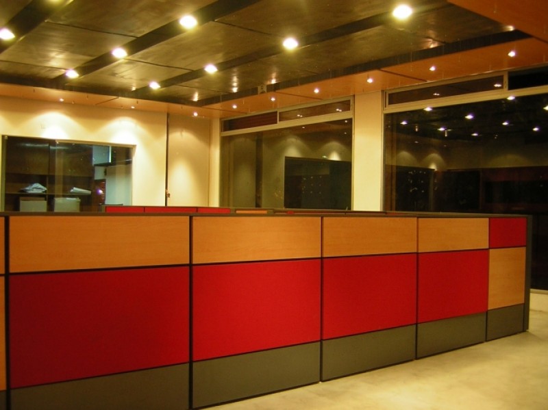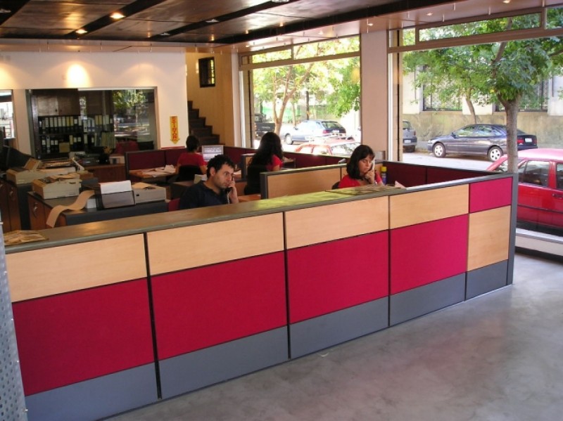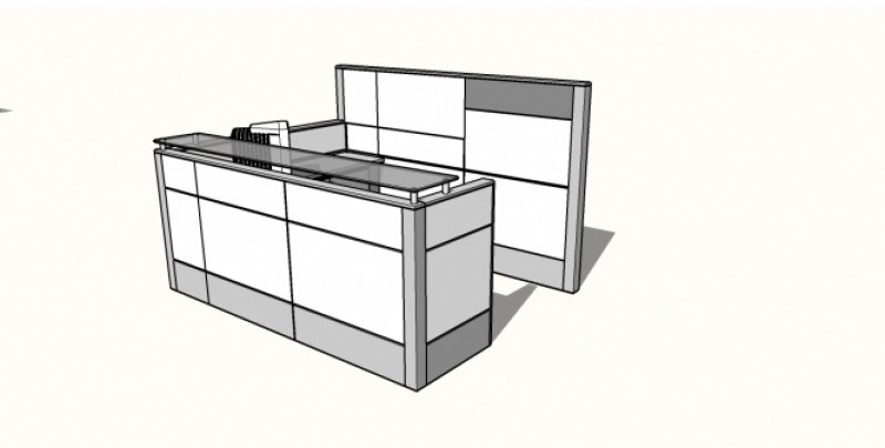 Módulos de recepción formados con paneles bajos, de 85 ó 105h cms. Superficies de trabajo, y superficies de apoyo sobre elevadas. Paneles con “tiles” desmontables en ambas caras, totalmente canalizables. Amplia gama de medidas y configuraciones. Terminaciones a elección.